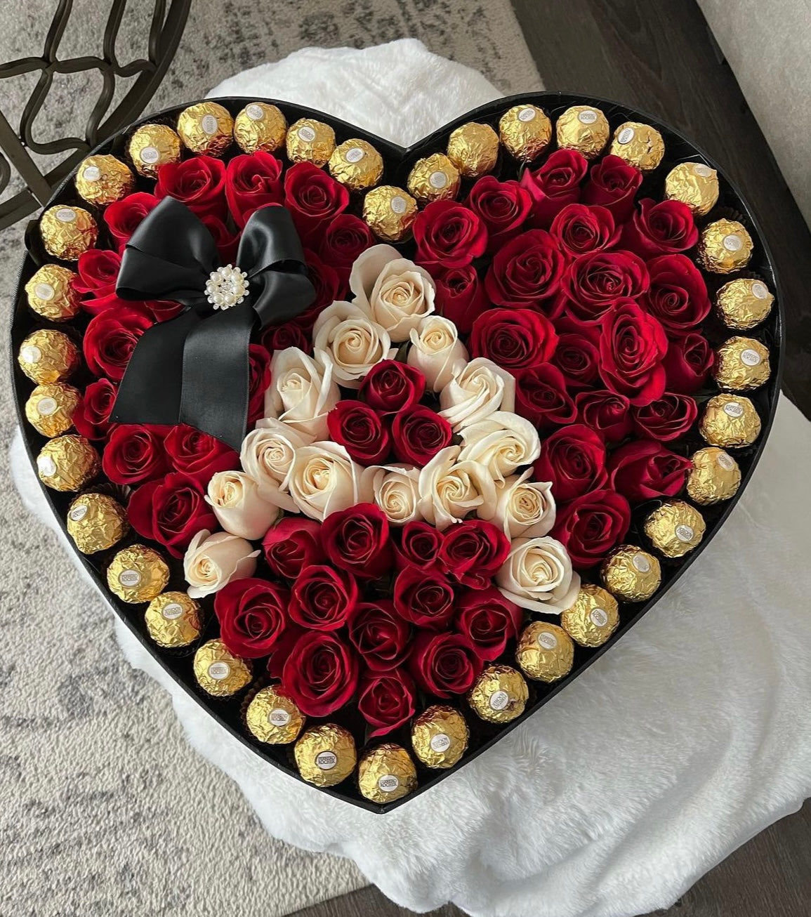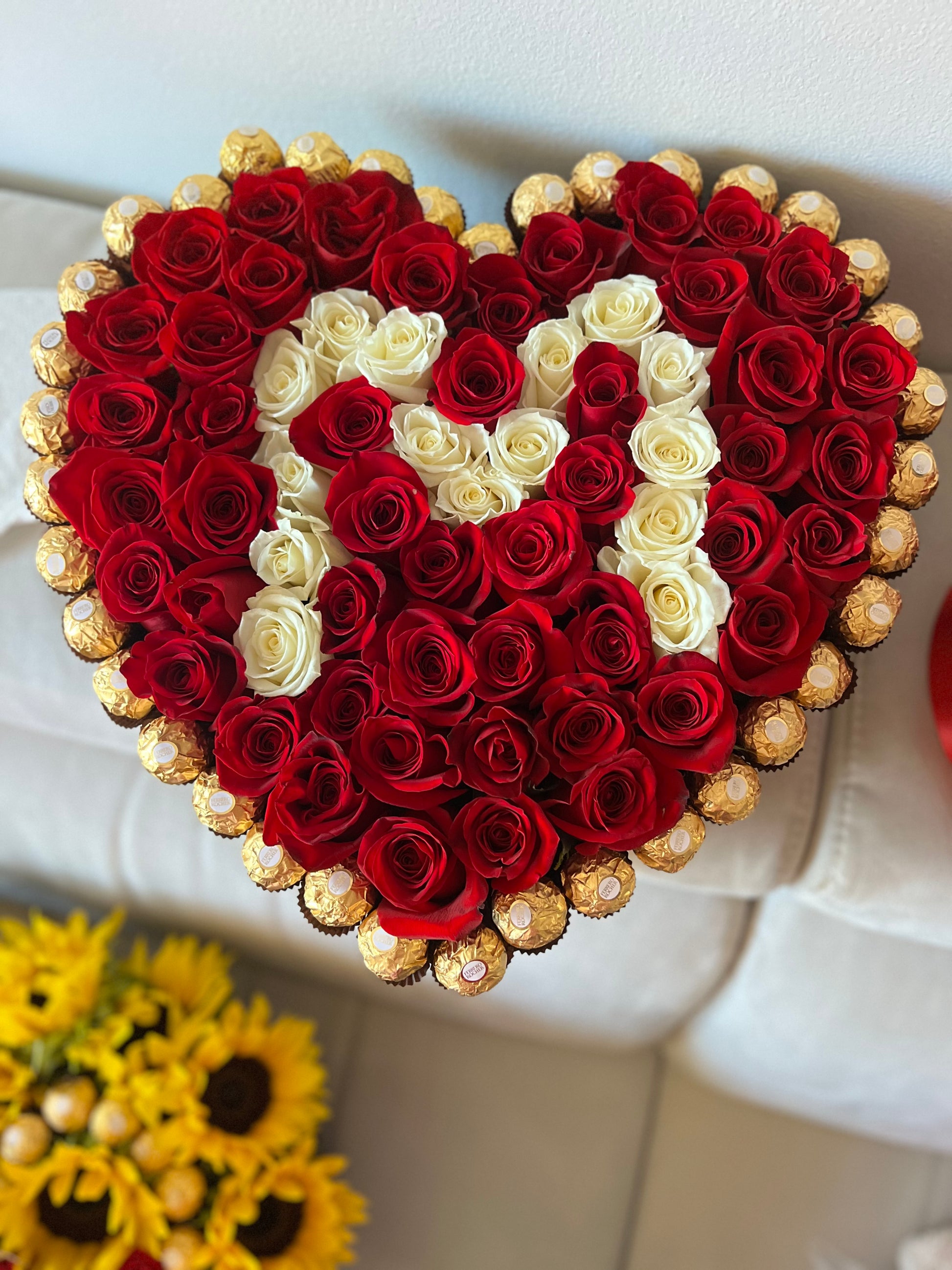 Description: Heart with Initial coming into our traditional "Love" Box which is shape like a heart. Coming with Chocolates. Up to to 70-75 Fresh Roses. You choose the letter in the middle.