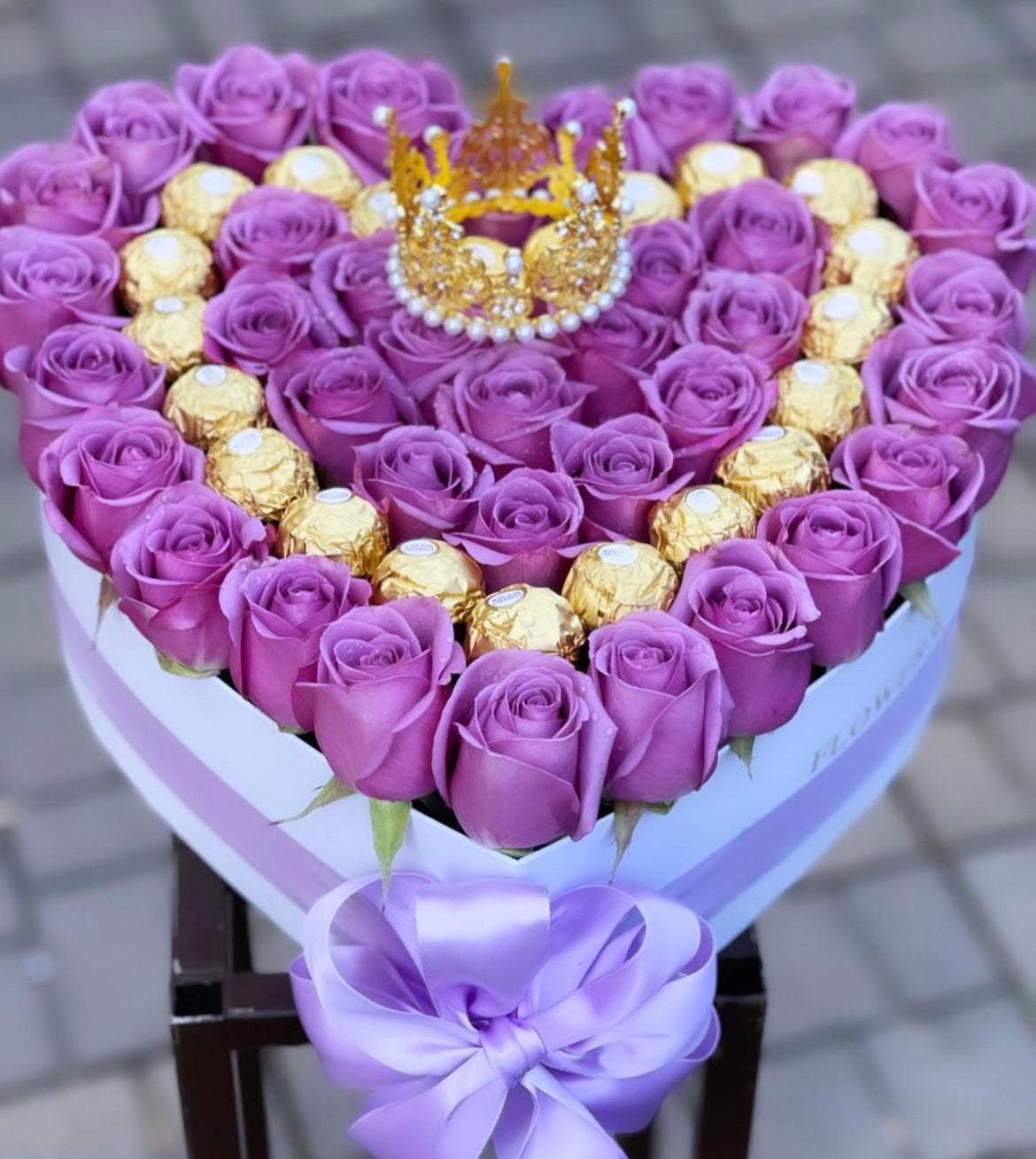 Description: The roses are nestled into our traditional "Love" Box which is shape like a heart. Coming with Chocolates Ferrero. Up to to 40 Fresh Roses.